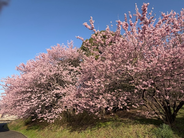 令和8年3月1日8時半頃の写真です。 今治の大角海浜公園の河津桜です。流石に車で出かけました。